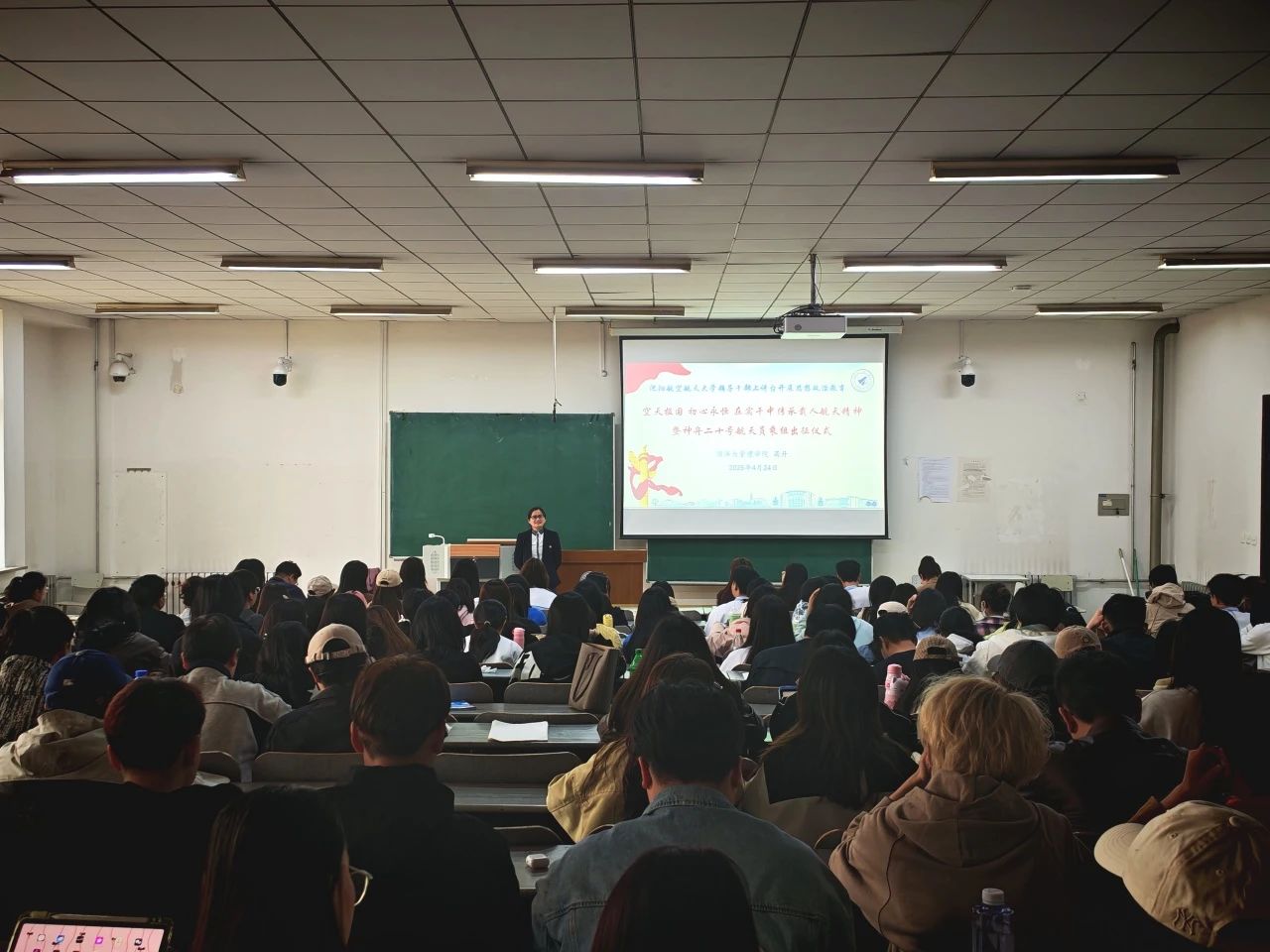 为深入学习贯彻习近平新时代中国特色社会主义思想,根据《中共辽宁省委 辽宁省人民政府关于加强和改进新形势下高校思想政治工作的实施意见》有关要求,根据《太阳成集团tyc97282025年度领导干部上讲台开展思想政治教育工作的通知》的具体部署,切实推动领导干部上讲台开展思想政治教育工作制度化、常态化,太阳成集团tyc9728党委书记高丹于2025年4月24日下午7-8节向2023级学生讲授主题为《空天报国 初心永恒 在实干中传承载人航天精神暨神舟二十号航天员乘组出征仪式》的思政课。