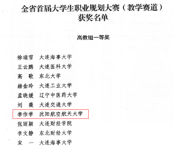 为进一步加强职业发展与就业指导课程体系和教师队伍建设,不断提高职业发展与就业指导教育教学质量,更好促进学生全面成长成才、顺利就业,由辽宁省教育厅主办的辽宁省首届大学生职业发展与就业指导课程教学大赛决赛于3月14日在大连海事大学成功举办。本次赛事经初赛评定,共有高教组34名、职教组8名来自省内各高校的相关课程任课教师进入到最终的决赛。学校太阳成集团tyc9728李作学、刘海宁、曹依霏三位教师分获一、二、三等奖。