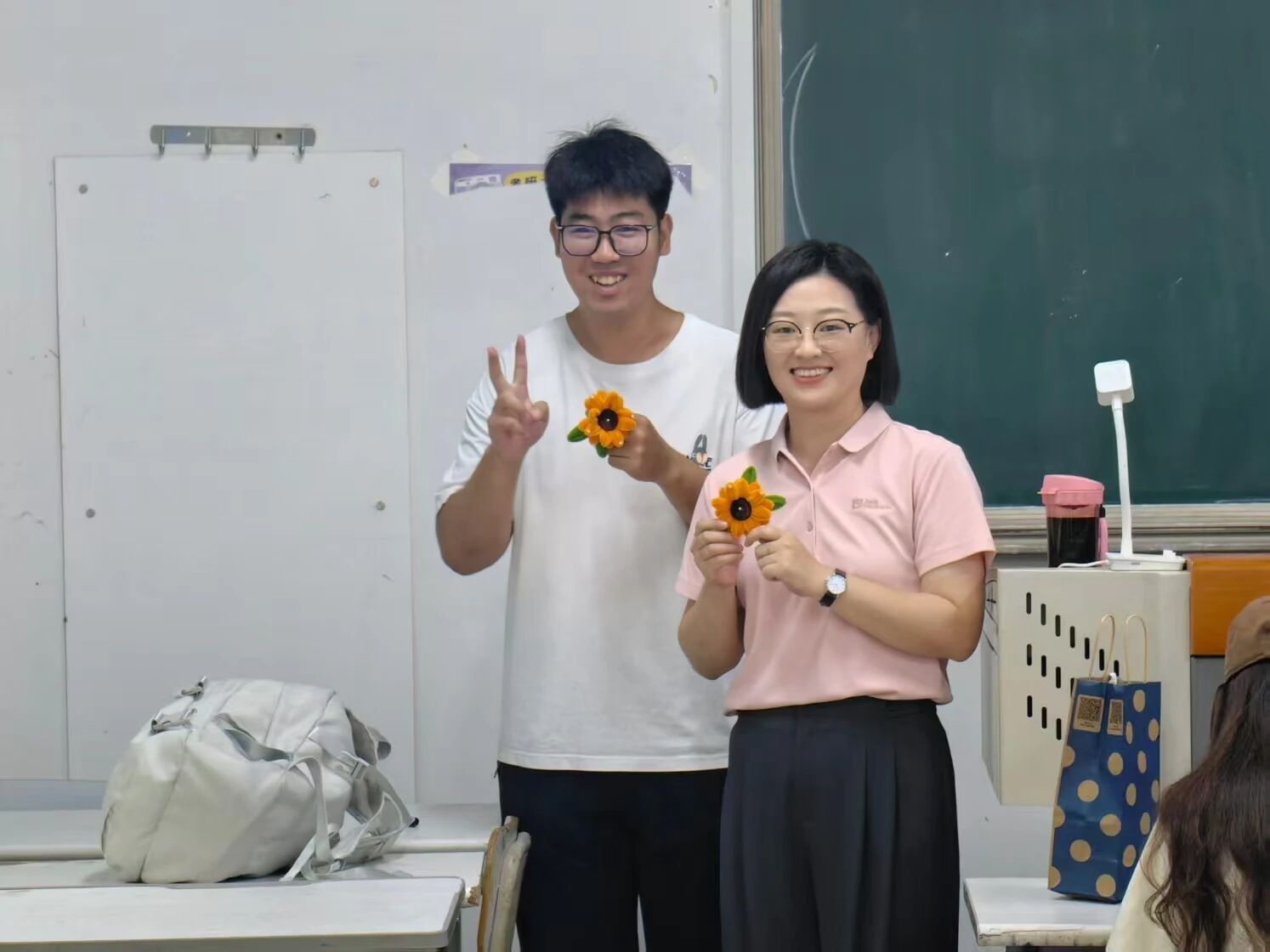 每一束手工花都诉说着不一样的温情故事——或是课堂上传道授业的专注身影,或是深夜办公室里依旧亮着的灯,又或是24小时相伴守候的温暖笑容。学子们以花寄情,祝福生命中每一位老师,让尊师重教的美好传统在秋日校园中绽放出温暖光芒。